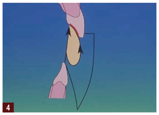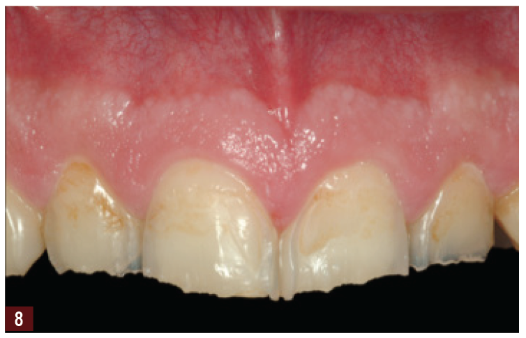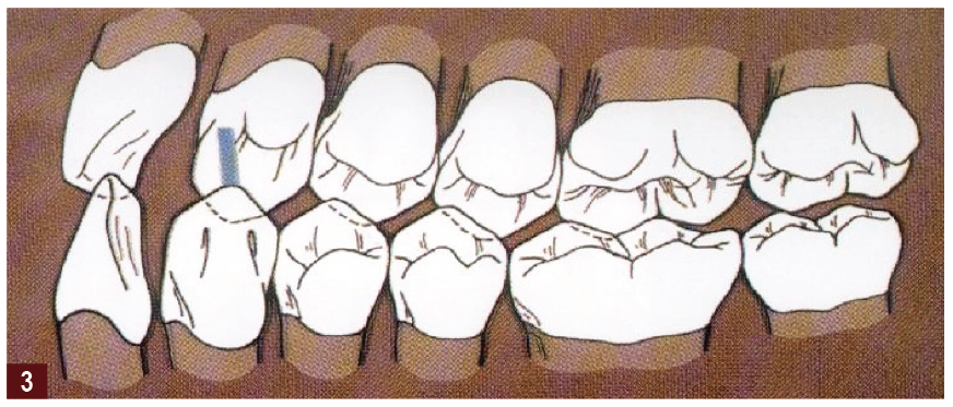 The Dahl principle is another method that has been used successfully over the years to reverse the dentoalveolar compensatory process providing space for restorations. Traditionally, this was a chrome cobalt or stainless steel denture placed on the palatal surface of the teeth. Today, composite restorations are usually placed to perform the same function. Research has shown that using the Dahl principle can successfully create space by addressing localized anterior tooth wear.4 It has been reported that 40% of the space is generated by intrusion of the anterior teeth with 60% of the space created by overeruption of the posterior teeth. It should also be recognized that providing an anterior appliance, such as a Dahl appliance, will act as a deprogrammer and produce space by allowing the muscles to relax and the condyles to seat. The Dahl appliance also improves the torque of the anterior teeth, which improves the overjet, which in turn will help to provide better anterior guidance, particularly an anterior guidance that is in harmony with the envelope of function.4 Direct composite restorations placed using the Dahl principle to treat tooth wear have demonstrated a success rate ranging from 94% to 96% over a 30-month period.2,3