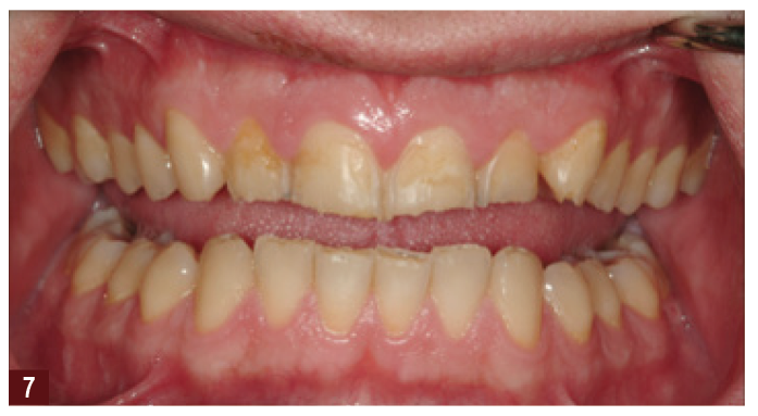 Another method for reversing dentoalveolar compensation and overeruption of worn teeth is to use orthodontics. Orthodontics can move the teeth to a more favorable position, creating space for restoration with a minimal approach by addition.5 Alternatively, gingival margins can be corrected with crown lengthening, then by providing crowns to restore the teeth, which is potentially more invasive.6 The combination of orthodontics and minimally invasive and esthetic restorations can be a very powerful tool in the treatment of tooth wear cases.