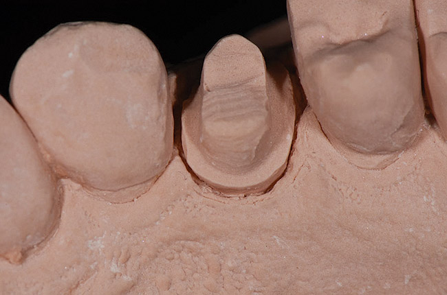 It is important to remember that the more information the laboratory technician has, the better job he or she can do. When working on a case such as a simple lateral incisor, the technician wants to see a clean, crisp, ideal preparation, as well as the entire contour of the opposite side of the dentition. A good ceramist will study both the shape of the tissue and the specific contours of the contralateral tooth. Studying the specific shape of the root at the margin makes it possible to create an emergence profile that will mimic a natural, self-cleansing form, but only if the details have been captured in the impression itself.