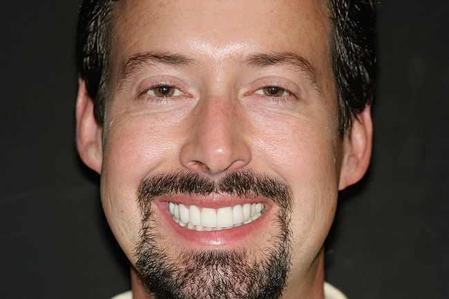 This patient (Figure 1) presented with a desire to improve his smile. He was especially self-conscious of the diastemas present, especially on his right side (Figure 2 and Figure 3). From an esthetic standpoint, his anterior teeth lacked proper width-to-length ratios, and the result was poor golden proportion (Figure 4 and Figure 5). The patient had previous adult orthodontic therapy, and the teeth were moved into the “best” position at that time.