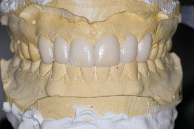 The restorations used in the case were IPS Empress® pressed ceramic veneers (Ivoclar Vivadent, www.ivoclarvivadent.us). This material was selected for its higher strength when compared to stacked porcelain veneers as well as its highly esthetic capabilities.
