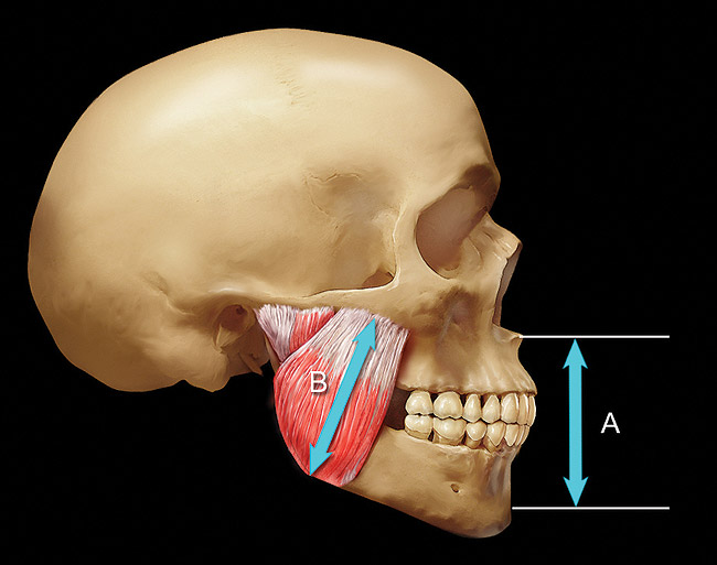 The mandible-to-maxilla vertical relationship at which the lower arch contacts the upper arch is established by muscle. Teeth erupt into the space between the mandible and maxilla until they contact in harmony with the repetitive contracted length of the elevator muscles. It is permissible, and often advantageous, to alter the VDO to achieve a more stable relationship of lower teeth with upper teeth because changes in VDO position the lower teeth horizontally as well as vertically on their opening/closing arc.